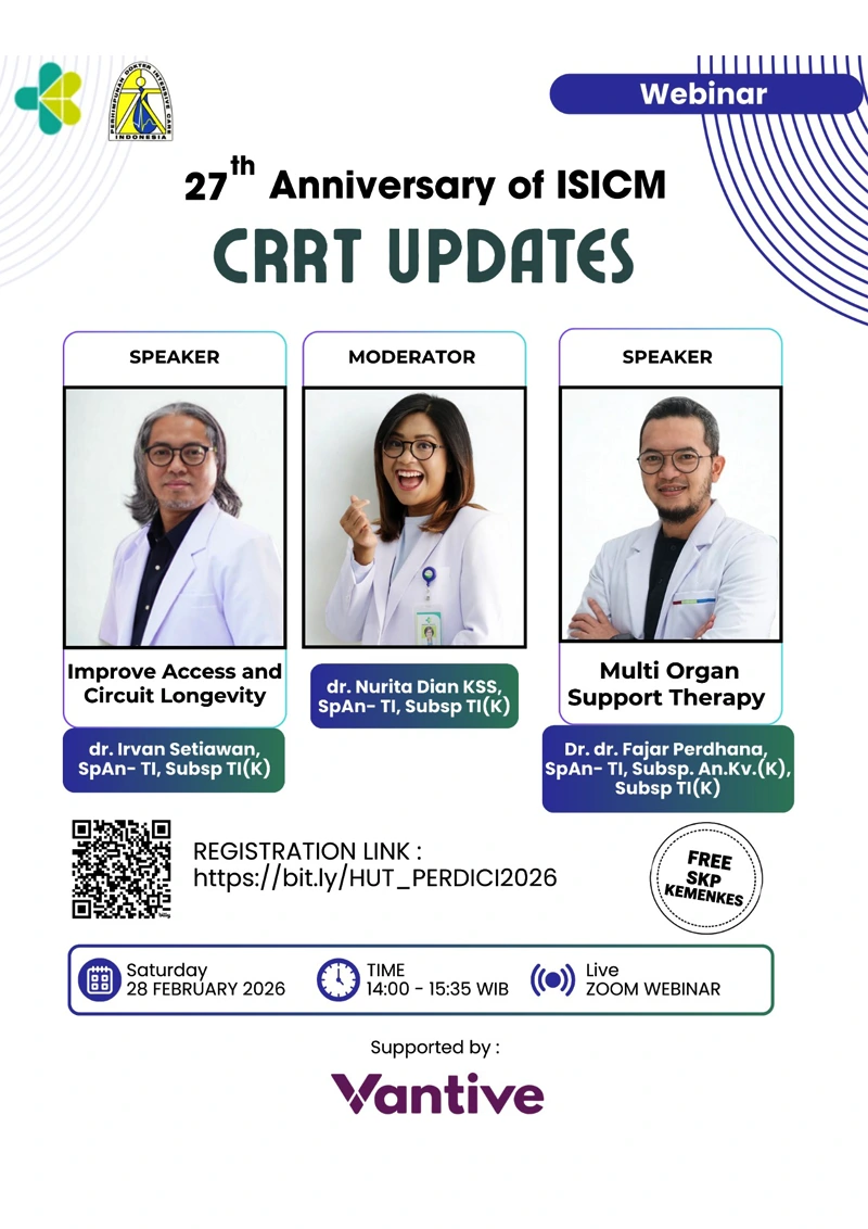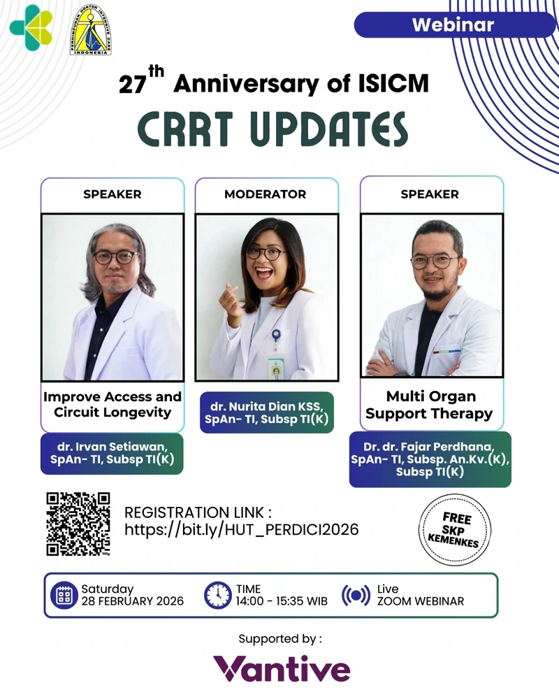 Sehubungan dengan akan diselenggarakannya penelitian multicenter dengan judul “Karakteristik ICU di Indonesia” oleh Perhimpunan Dokter Intensive Care Indonesia. Maka kami bermaksud mengajak sejawat sekalian untuk menganalisa karakterisitik ruang ICU di rumah sakit di Indonesia yang dimana hasil penilitian akan sangat bermanfaat bagi para pemangku kebijakan, tenaga kesehatan dan bagi Keilmuan. Berikut sosialisasinya dapat diikuti melalui link youtube disamping ini.
