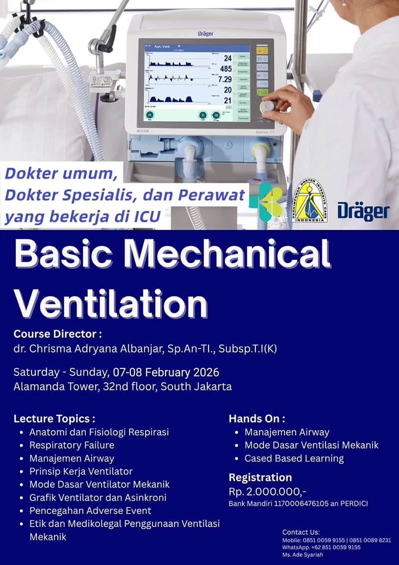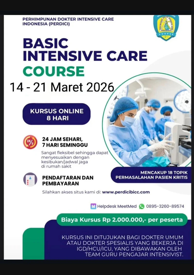 Sehubungan dengan akan diselenggarakannya penelitian multicenter dengan judul “Karakteristik ICU di Indonesia” oleh Perhimpunan Dokter Intensive Care Indonesia. Maka kami bermaksud mengajak sejawat sekalian untuk menganalisa karakterisitik ruang ICU di rumah sakit di Indonesia yang dimana hasil penilitian akan sangat bermanfaat bagi para pemangku kebijakan, tenaga kesehatan dan bagi Keilmuan. Berikut sosialisasinya dapat diikuti melalui link youtube disamping ini.